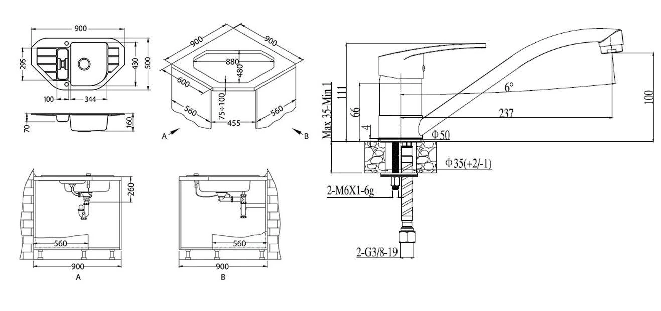 - adatto al montaggio sopra top (in un mobiletto di 600 mm di larghezza)