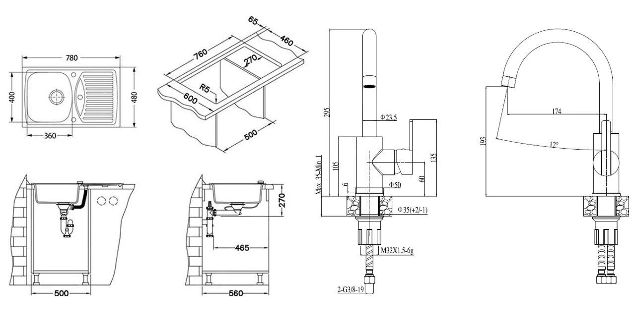 Set lavello Record 30 e miscelatore per lavello Tonia