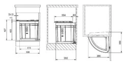 - altezza di incasso 360 mm sopra il fondo del cassetto, altezza massima del lato del cassetto 265 mm sopra il fondo