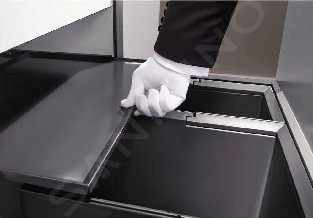 Il set comprende anche un pratico coperchio. Il cestino incorporato Blanco Flexon II è realizzato in plastica di alta qualità e a bassa manutenzione. È inoltre stabile e fabbricato con precisione. È facile da montare e si inserisce perfettamente nel mobile inferiore della cucina. È molto importante inserirlo in un mobile con cassetto di 600 mm di larghezza e 400 mm di profondità. L’altezza di incorporazione del cestino è di 360 mm sopra il fondo del cassetto, mentre l’altezza massima del lato del cassetto deve essere di 265 mm sopra il fondo. Quando si pianifica l’altezza della cestino, tenere conto anche dell’altezza del fondo del mobile, della profondità di installazione del lavello, compreso il dispositivo di scarico, e della conseguente altezza minima del cestino.