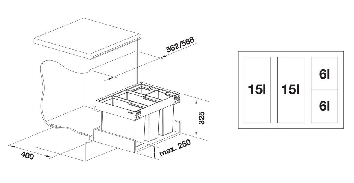 Blanco Flexon II – Pattumiera Incorporata, Differenziata, Capienza 42 L 526644