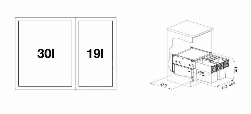 Pattumiera da incasso Select II 60/2 con estrazione anteriore