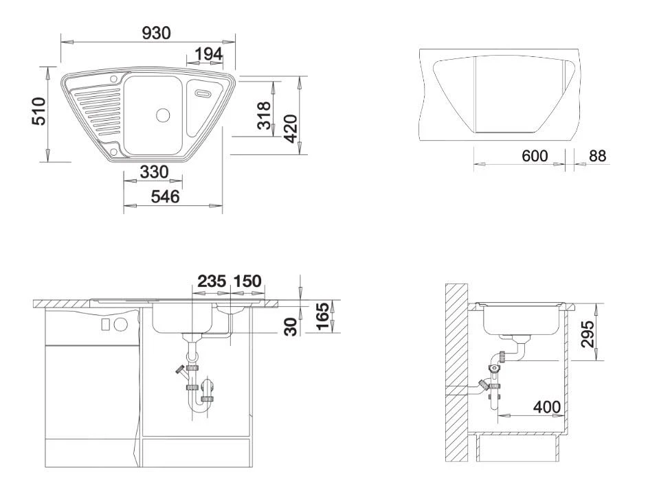 - la fornitura include sistema di scarico con tubo salvaspazio e valvola filtro 3 1/2“