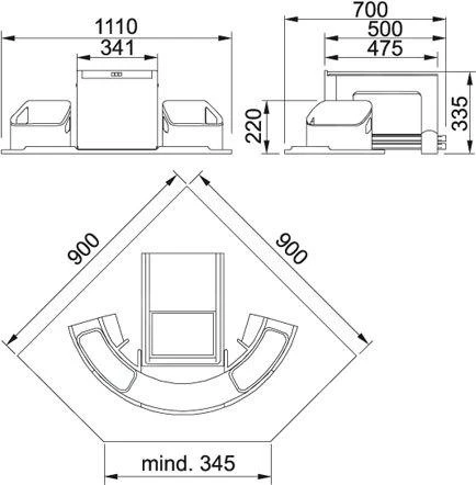 spazio di montaggio minimo: 345 × 700 × 335 mm