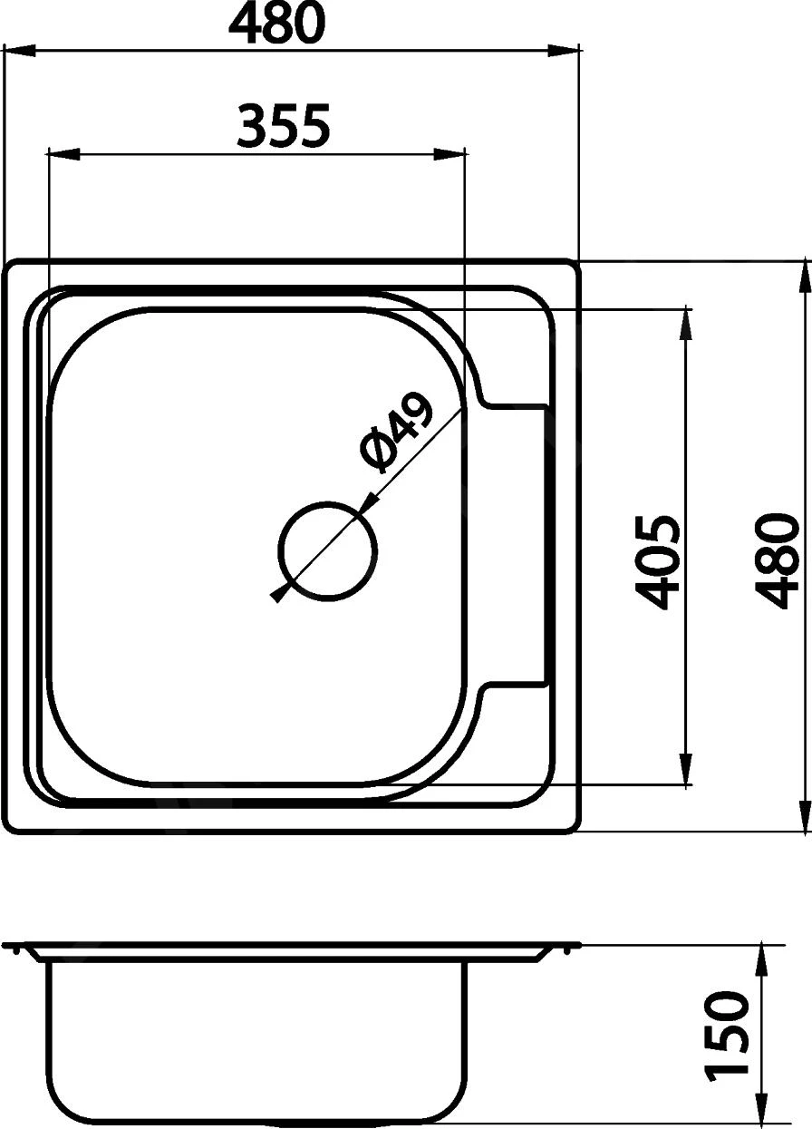 Lavello in acciaio inox 48x48x17, struttura intrecciata, con troppopieno. Incluso il sifone NSP20